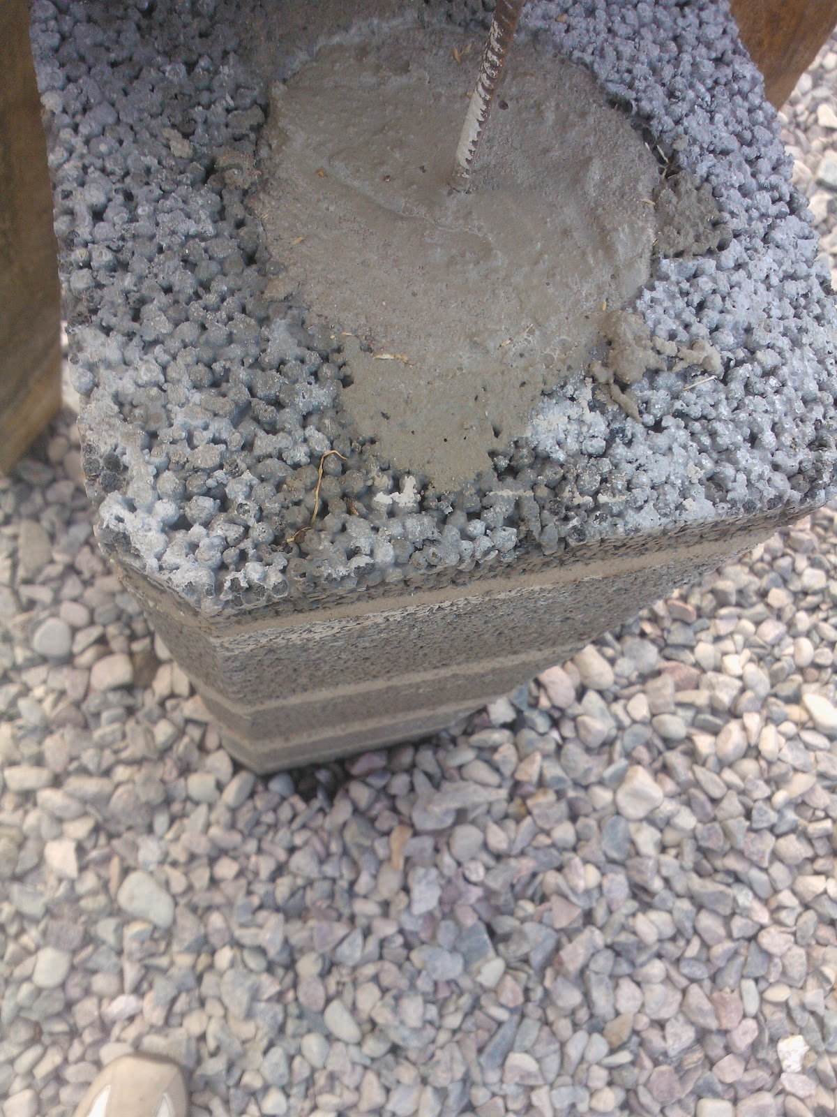 Harkkopilarit valettiin täyteen ja asennettiin tartuntaraudat.