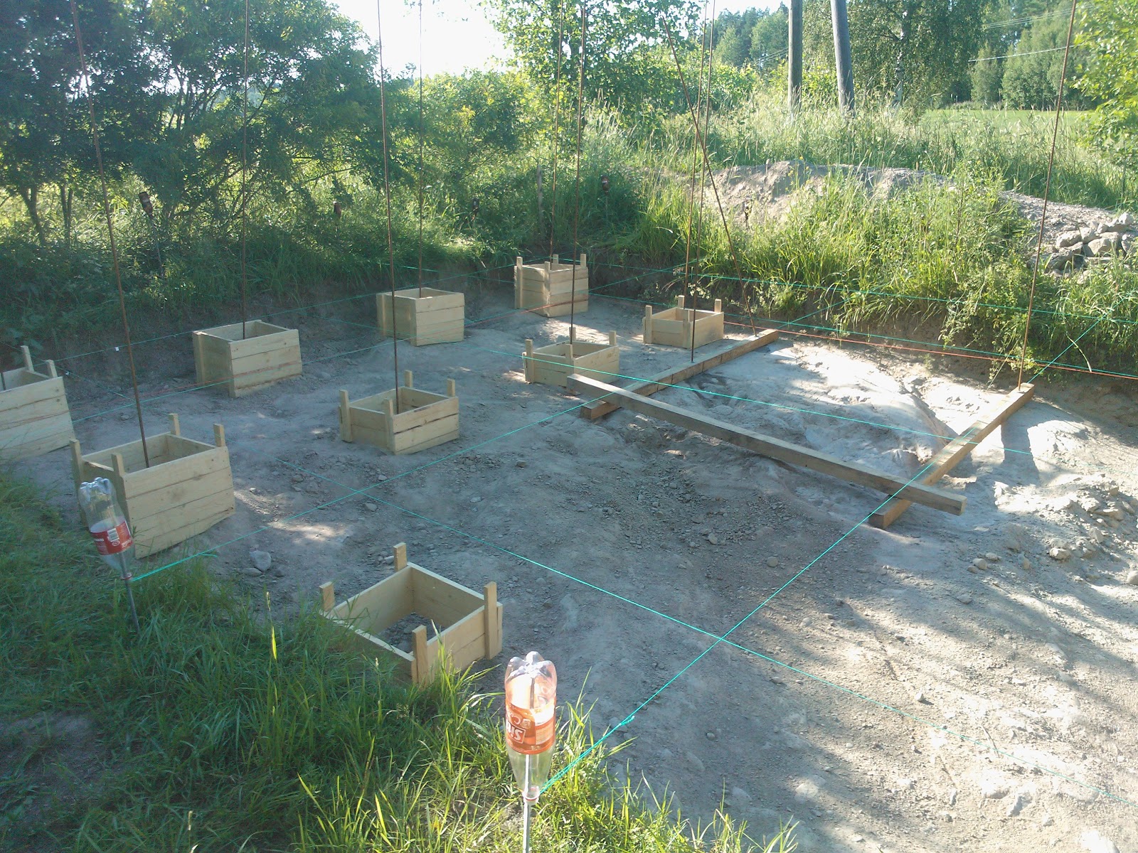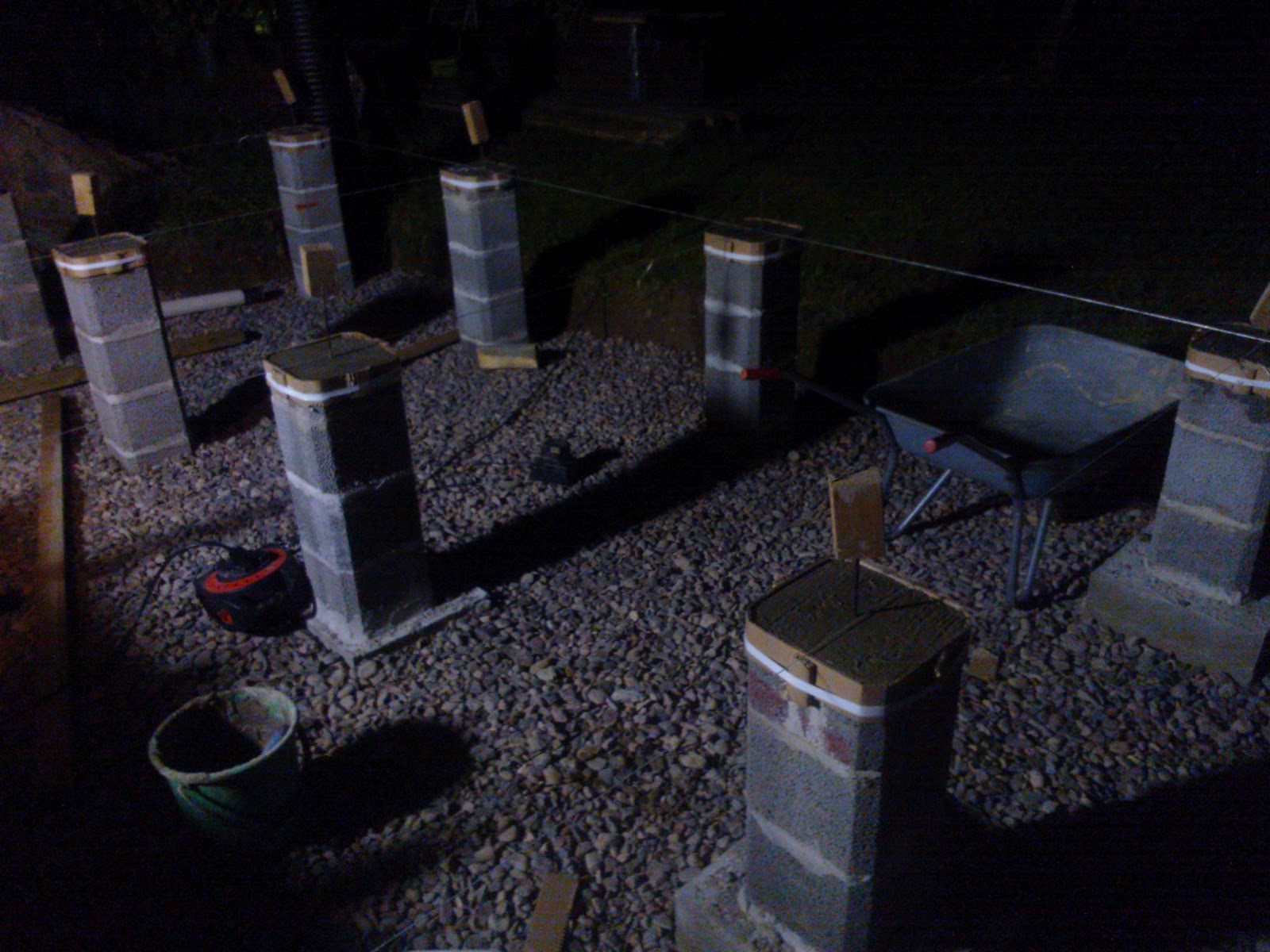 Betonipilareita ei valettu mihinkään tiettyyn korkoon. Tasaus tehdään itse harkoilla.