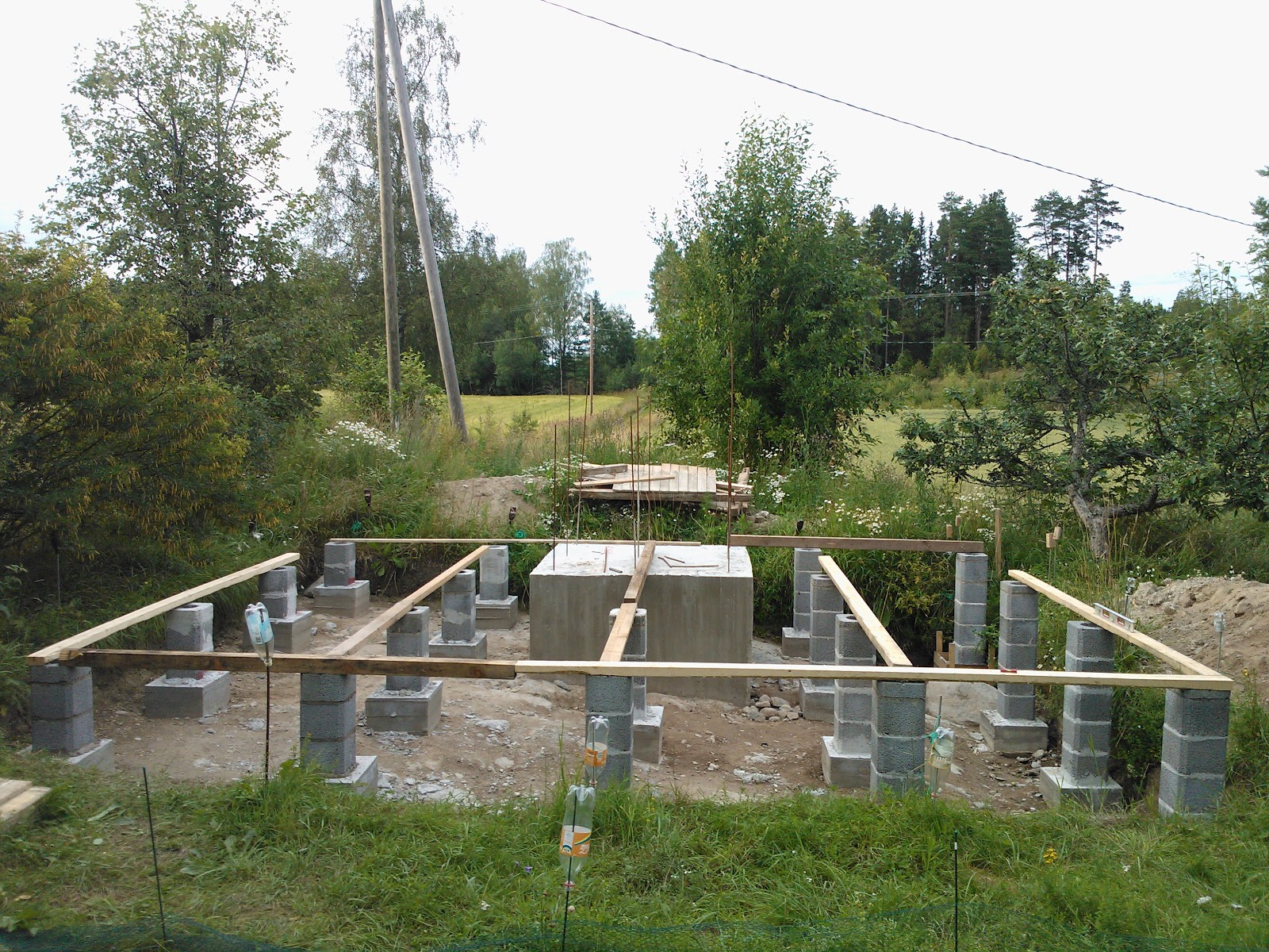 Melkeinpä tuo on rahallisesti sama jos oltaisiin tehty pöntöt korkeammaksi ja valettu täyteen jolloin harkkoja ei olisi tarvittu. Ehkä tuo on kuitenkin kivemman näköinen kun talon alta näkyy harkot.