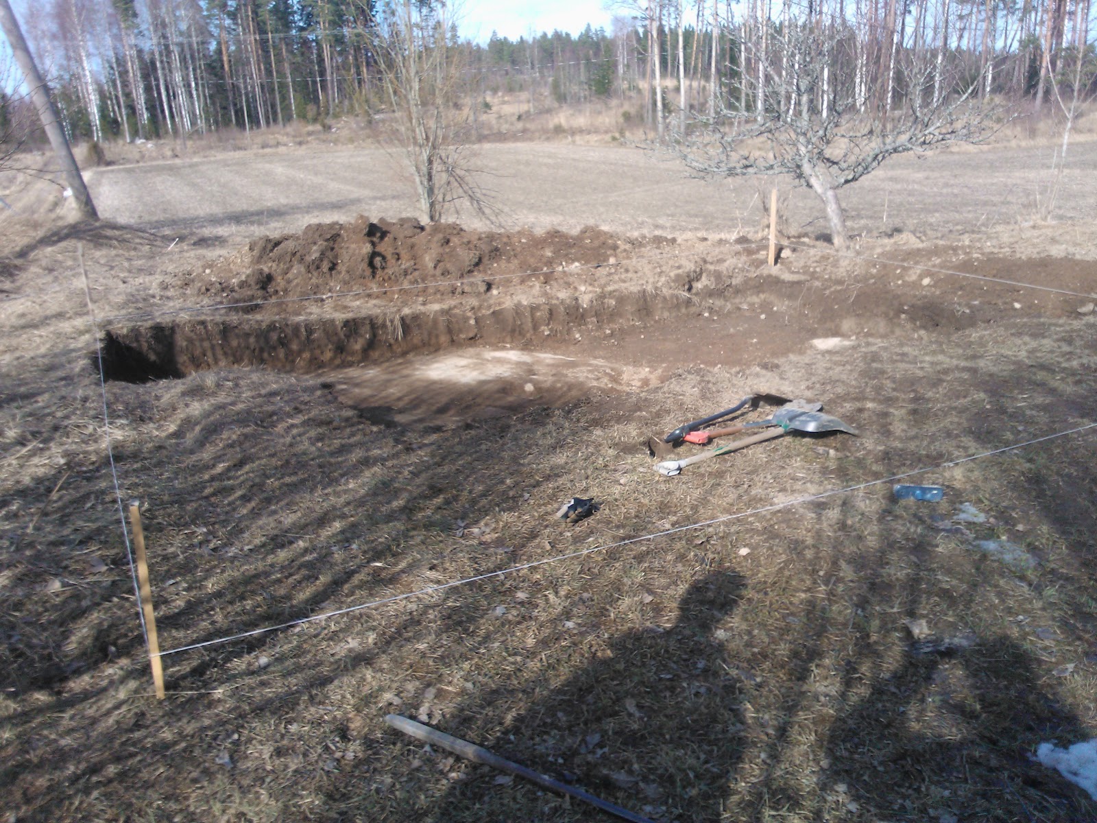 Seuraavana päivänä oli hieman paikat hellänä edellispäivän 8h kaivuusta. Saatiin kuitenkin jatkettua tasaisen tappavaan tahtiin ja lopputulos oli iltapäivään mennessä hyvä. Puolet kaivettu ja aika lähteä kotiin keräämään voimia. Kiitos apurille: velipoika