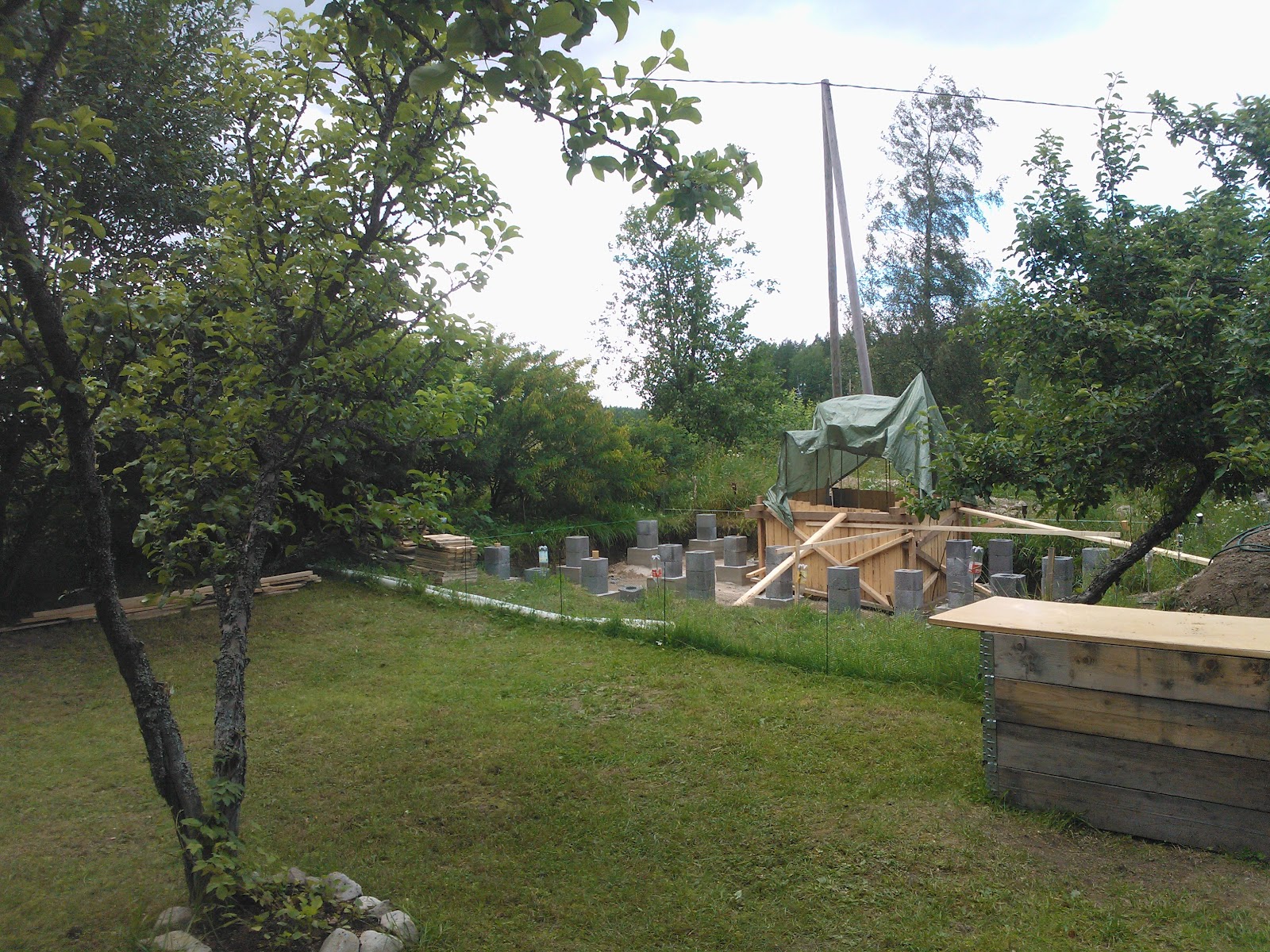 Todistetusti onnistuu =) Pikkaisen epäilytti mittaukset kun valoin 23:00 - 02:00 yöllä. Alasidepuut kiinnitettiin pilareihin reikänauhalla joka lyötiin betoniin porattuun reikään. Muutamalla huopakaistalla tasattiin korkeuserot. Tähän asti päästiin tänään... Alasidepuut alkavat olla jo paikallaan. Oli pakko kokeilla miltä terassi näyttää. Tuulensuojalevyjen raamit/kannattimet. Tuenta pesu- ja pukuhuneen välisen alapohjan kohdalla. Salaojan tarkastusputki sai tyylikkään väliaikaisen kannen. Mikäli joku tietää mikä tuo on voisi hieman valaista meitäkin. Valurautaa ja keskiosan saa irti??? Vaikka alasidepuut ovatkin kestopuuta, laitettiin talveksi pressut päälle. 2013 Taas mennään =) Kevät on koittanut ja pressut poistettu, aurinko lämmittää ja runkotolpat alkavat nousta. |