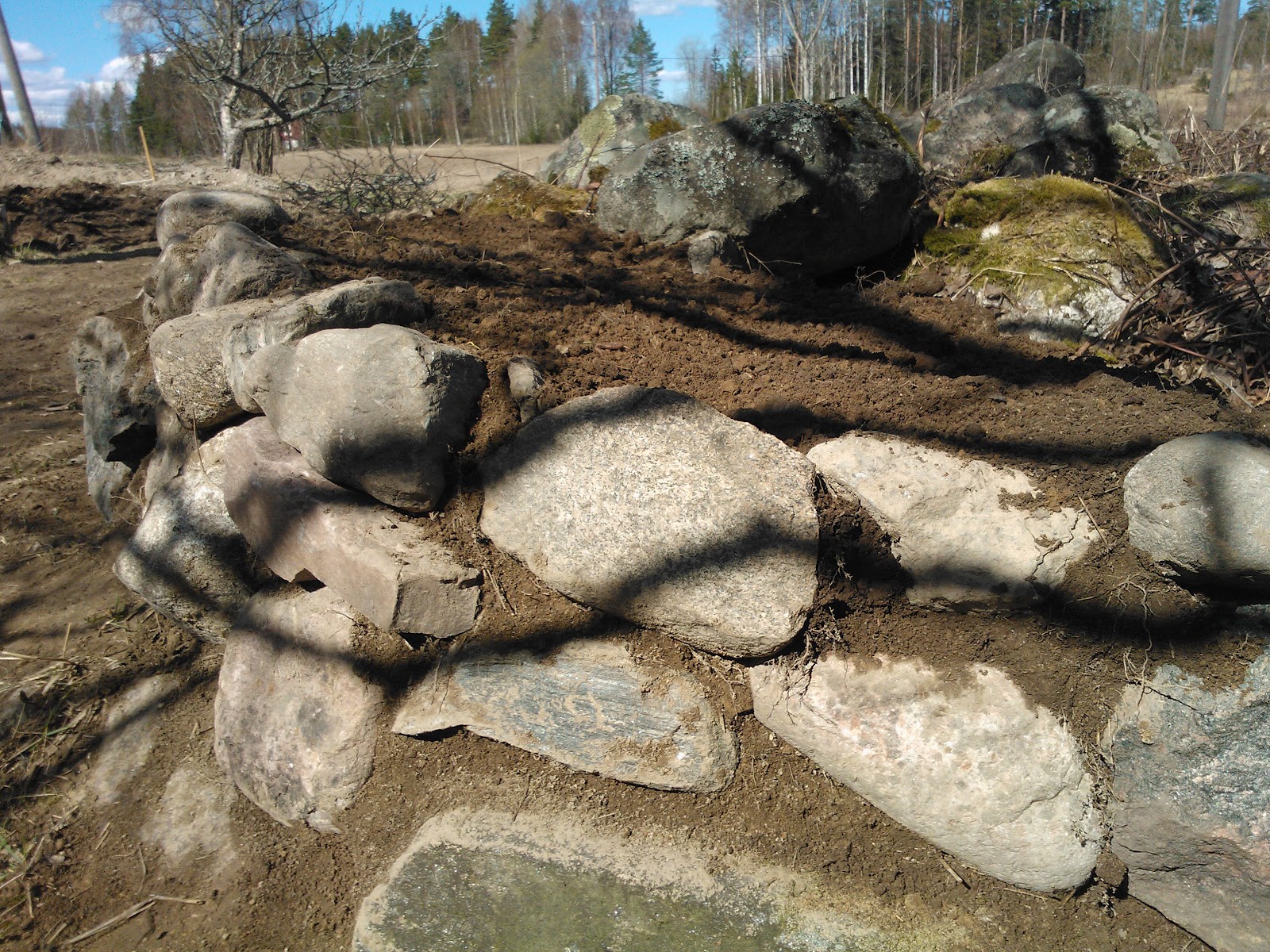 | Päivän mittaan korjailtiin vähän viime kerralla aloittamaamme kivimuuria ja sen taakse tehtiin kukkapenkki, johon heitin kokeilumielessä siemeniä...iloinen yllätys jos sieltä jotain nousee! |