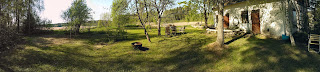 Muutaman päivän niittämisen jälkeen kalusteet löysivät oman paikkansa omenapuiden varjosta |