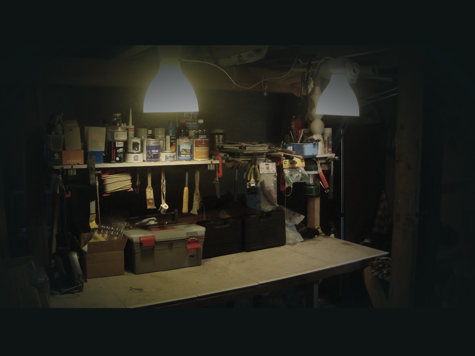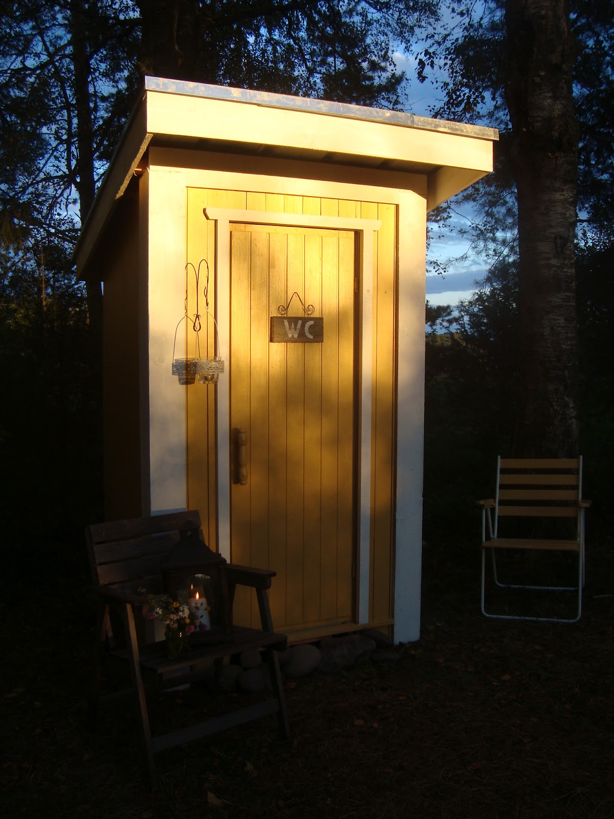 | Fiilistelykuva valmistuneesta puucee:stä iltahämärällä |
