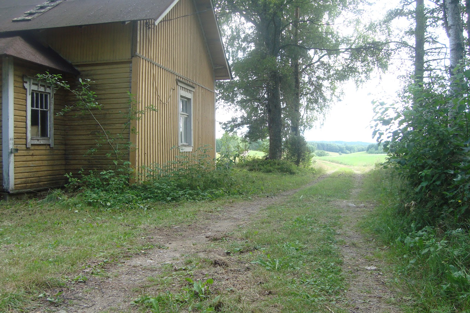 Hieman vinksahtanut mutta näkee siitä että nurmikko on ajettu.
