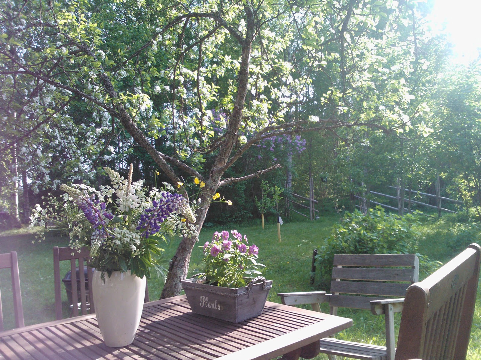 Tänään kurvattiin mökille taas perheen ja parin apumiehen voimin. Meille oli järjestetty pihalle yllätys sillä viime vuonna vain muutaman kukan tehneet syreenit olivat tänä vuonna täynnä kukkia. Tuoksu oman mökin pihalla oli todella ihana! Samoin omenapuut olivat kukassa, mutta ne eivät päässeet niinkään yllättämään koska niitä osattiin odottaa...kauneudessaan toki nekin saavat aina huokailemaan...