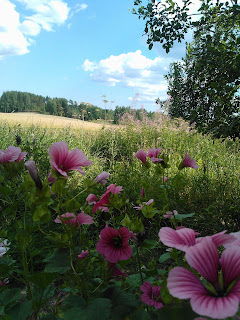 Mökin kesäkukat eivät ole oikeen tykänneet kuivasta ja kuumasta kesästä, mutta tämä marketta on päässyt hirsitalon portaille suojaisaan varjopaikkaan. Välillä ei oikein jaksa kukkia, mutta piristyy aina kun nähdään. Todettakoon vielä tämän kesän kasvatusten osalta, että eipä ole ollut helppo kesä tällaiselle puutarha-harjoittelijalle. Vettä on tullut niin vähän ja aika ajoin on ollut paahtavan kuumaa. Fiksumpana ja kokeneempana alan kuitenkin syksyllä suunnittelemaan seuraavan kesän kasvatuksia!
