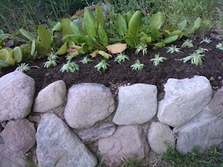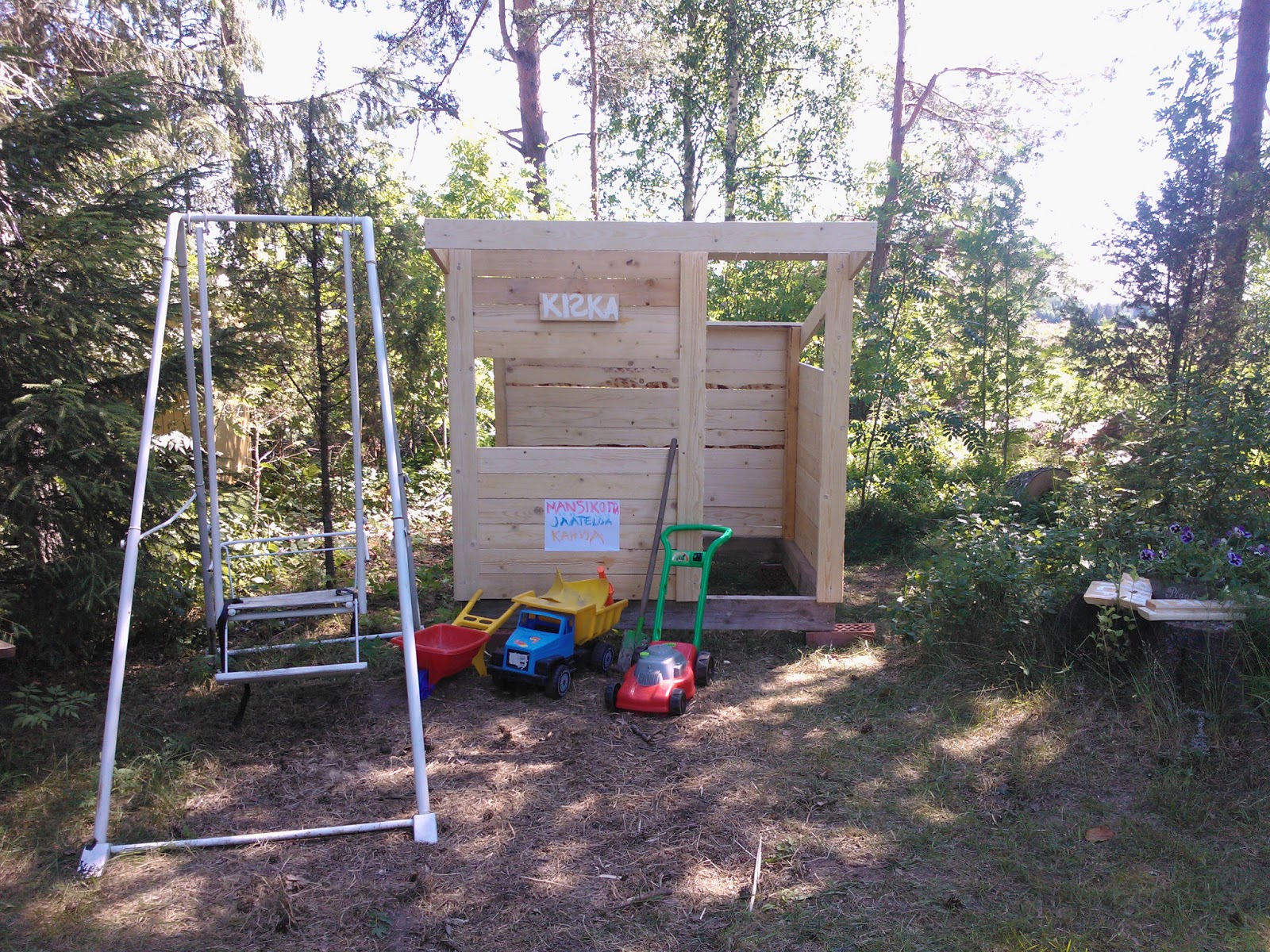 Kivimuurin päälle laitettiin tänä vuonna uusia mehitähtiä ja taidetaan jättää ne kylmienkin ilmojen tullen maahan. Viime vuonna otettiin edelliset mehitähdet kotihoitoon talven tullen eikä se ollut tuloksen kannalta kovin kannattavaa...Tänä viikonloppuna aloitettiin myös rakentamaan pojille jo pitkään suunnitelmissa ollutta kiskaa, johon olisi tarkoitus rakentaa katolle myös aidat ja ratti. Esikoisemme toiveissa on saada katolle oktonauttien alus :) Tämä kioski on pahasti vielä kesken, mutta näyttää kivalta jo näinkin, joten siksi saatte nähdä siitä jo raakaversion. Mitäpäs pienistä jos lattiat, katto,hyllyt yms. puuttuu...