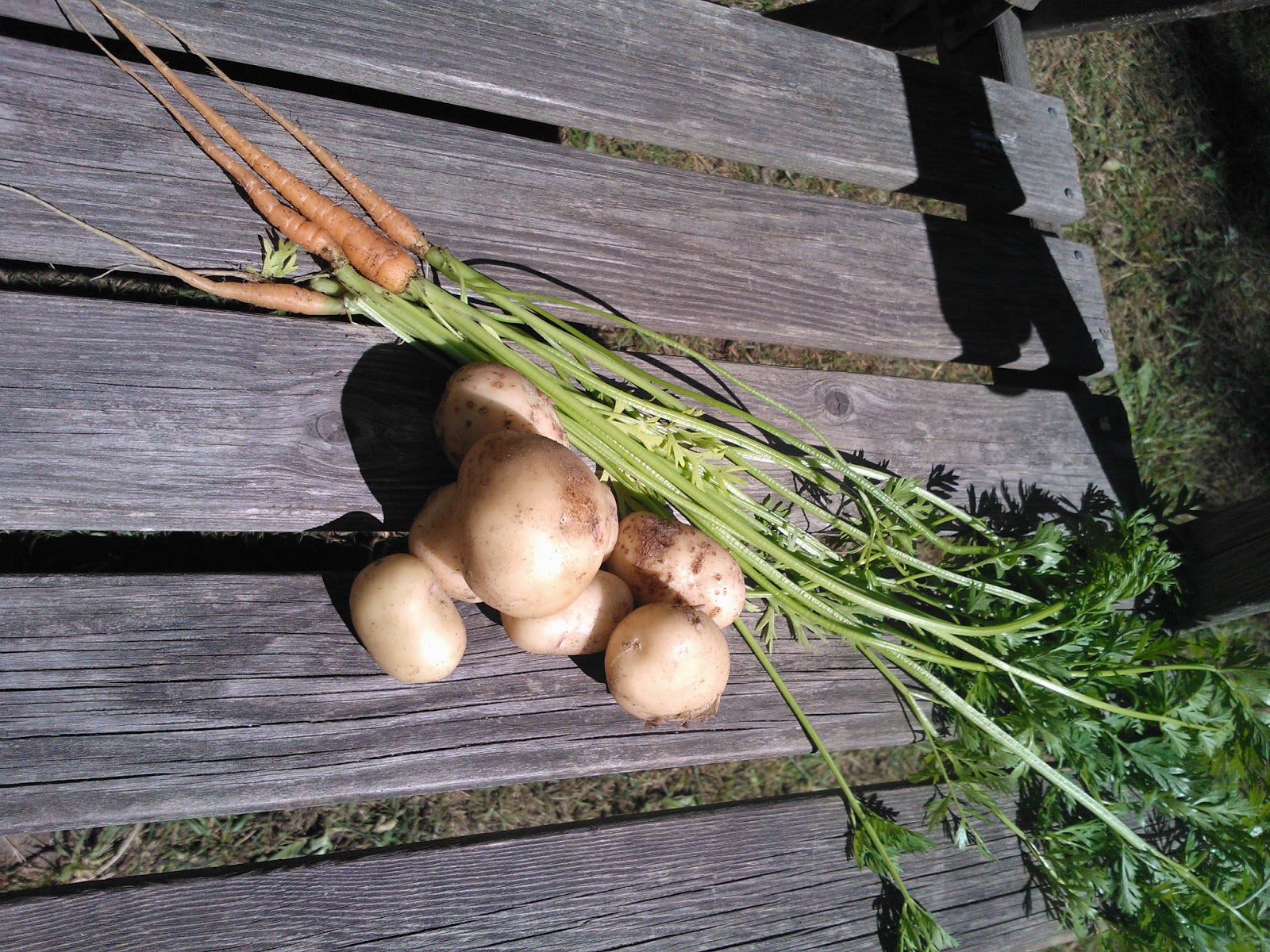 Tässä lopuksi vielä kuvat kokeiluista, jotka nostimme maasta tänään...perunat näyttävät jo vallan hyviltä ja porkkanatkin ovat saaneet jo hieman kokoa. Viimeisenä mökin vierellä oleva pelto kuvattuna lauantai-aamuna kun saavuimme tontille juuri pahimman sadekuuron yllättäessä...värit olivat uskomattoman kauniit ja niitä oli pakko pysähtyä keskelle tietä ihastelemaan.