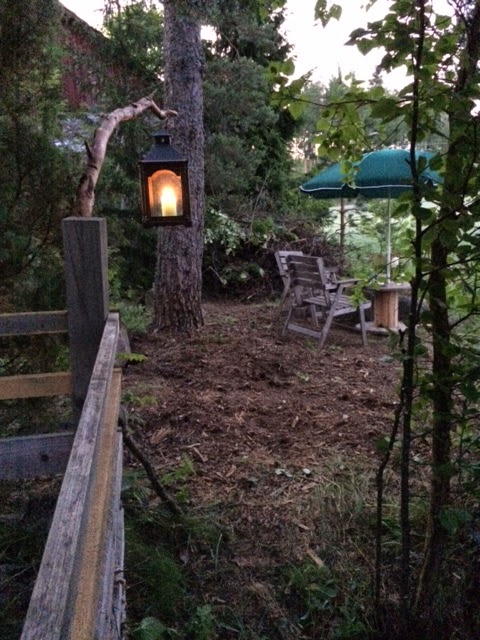 Meidän tontille ei paljoa metsää mahdu ja siinä pienessä mikä löytyy kasvaa muutama mustikanvarpu. Mustikat taistelevat olemassaolostaan muiden kasvien kanssa ja siksi päätettiin niitä auttaa. Erilaiset risukasat joita aikanaan on tullut tänne tehtyä saivat uuden paikan. Maapohja siistittiin ja rikkaruohot kitkettiin. Toivottavasti mustikanvarvut tuosta leviäisivät. Töiden päätteeksi keitettiin teetä ja laitettiin katsomo pellolle päin jossa "superkuu" möllötti.