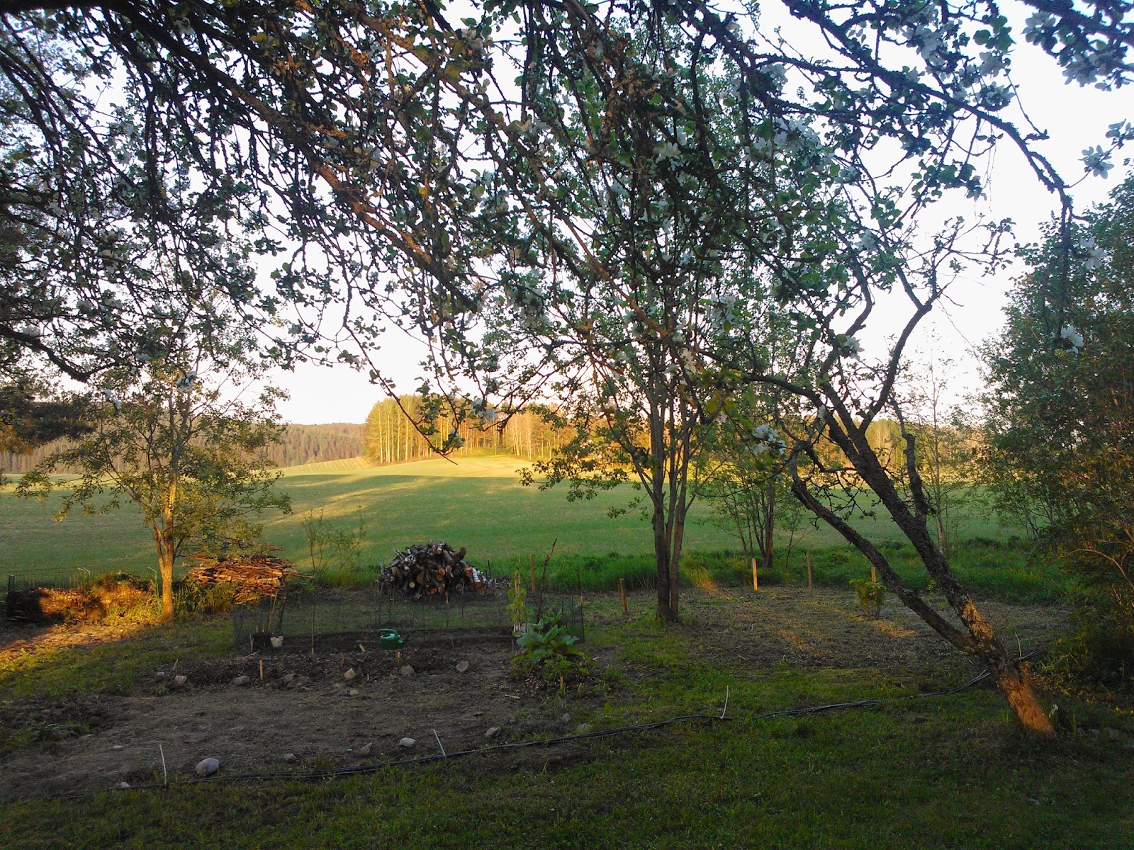 Vihdoinkin pääsimme nukkumaan viikonlopuksi mökille. Sää oli mitä mahtavin ja välillä jopa tukalan kuuma rakentamiseen. Rakennuksilla saatiin aluslaudoituksia kiinnitettyä ja kaikki kulmalaudat paikalleen. Kasvimaalla riitti kitkemistä jotta vanhat alueet eivät kasvaisi umpeen ja että uusille olisi tilaa. Löydettiin vihdoin meidän tonttiin kuuluva venevalkamaoikeus, jossa oli hyvä hiekkapohja uintia varten.