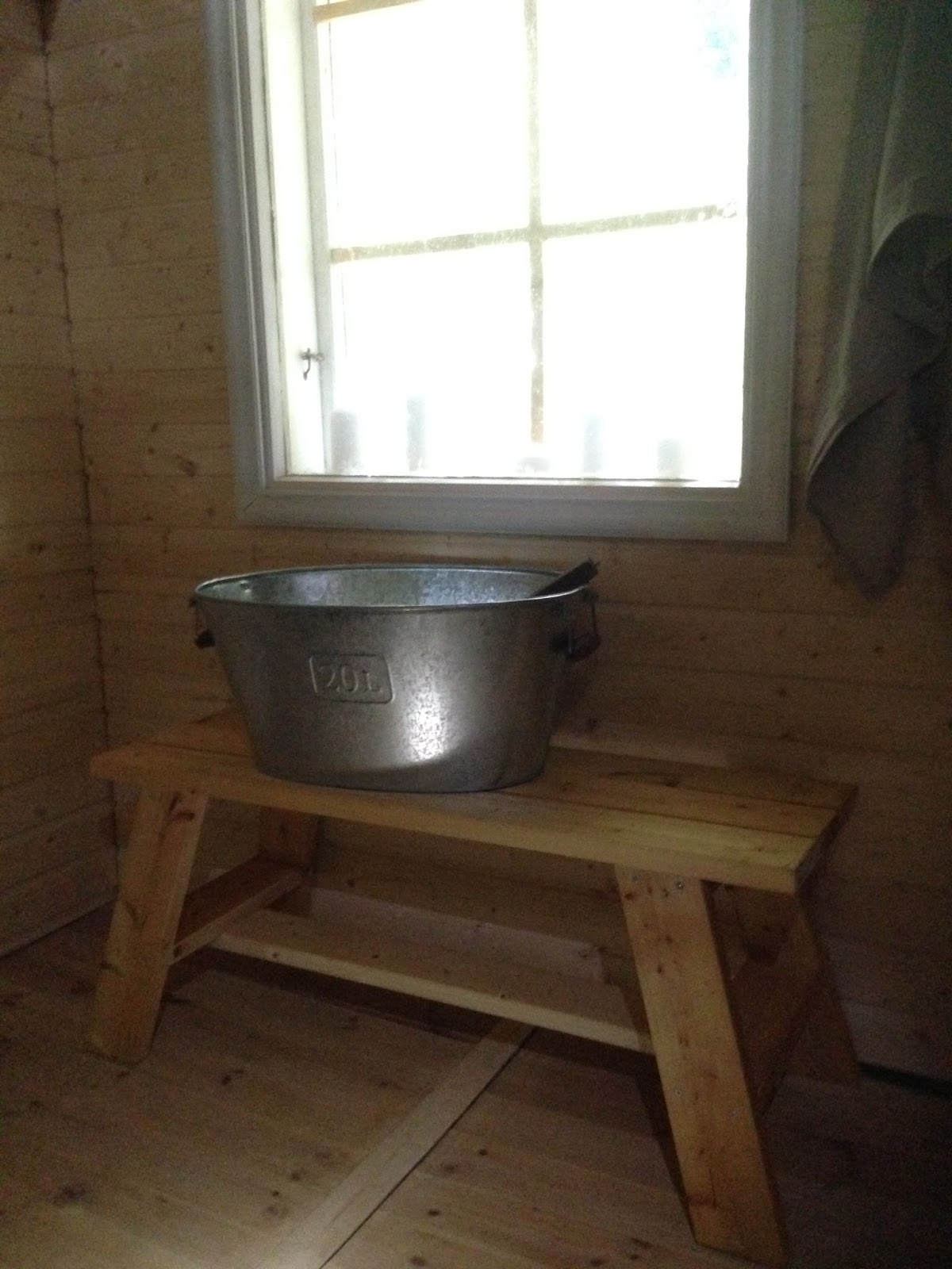 Saunaan kaivattiin kipeästi pesupenkkiä. Edellinen siirtyi kasvihuonetta koristamaan. Tähän ei tarvittu kuin sadepäivä, jämälautaa, luovuutta ja pellavaöljyä. Hyvin hieno ja käytännöllinen <3
