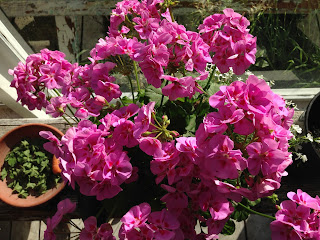 Pihalla meitä oli vastassa korkeat auringonkukat ja pelargonia oli herännyt lämpimien syyspäivien myötä uuteen loistoonsa. Kasvihuone oli kypsyttänyt meille herkullisia punaisia tomaatteja heitteille jätöstä huolimatta ja taivaalla aurassa lentelevät kurjet jättivät meille taas hetkeksi hyvästit huudoillaan. Kotona oltiin. Ko-to-na (Niinkuin ekaluokkalaisellamme on tapana tavata.)
