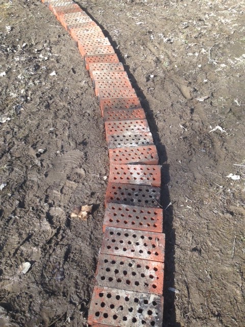 Tänään maa näytti tältä. Mutaa, mutaa ja mutaa. Ensiavuksi tehtiin jopa pitkospuita käytetyistä tiilistä polkujen kohdalle.