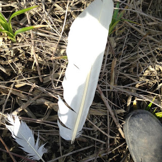 Löydettiin kauniita valkoisia joutsenen sulkia, puhtaita ja täydellisiä. Luonnon taideteoksia, pienempi otti höyhenet käsiinsä ja harjoitteli pellolla lentämistä. Kaikki haluavat lentää, vapaina ja onnellisina. "Äiti mä osaan." "Hienosti osaatkin, kunhan vain haluat ja uskallat!"