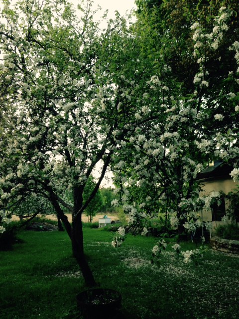 Ruohikko oli eräänä toukokuisena viikonloppuna täynnä valkoisia kukkien terälehtiä kun tulimme illalla väsyneinä mökille. Tuona iltana saimme nauttia värien kontrastista ja huokailla valkoisen kukkasateen keskellä...Yritimme epätoivoisina ottaa kuvia tuosta ihmeellistä hetkestä, mutta yhteenkään kuvaan ei saatu talteen tuota hetken ihmeellisyyttä. Yhdessäkään kuvassa ei näkynyt kukkien paljous ja sen tuoma lumoava tunnelma...