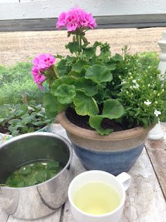 Itse olin onnesta soikeana kun sain kerätä tuoreita teen aineksia suoraan pihalta...vadelman lehteä, mustaherukan lehteä, poimulehteä.