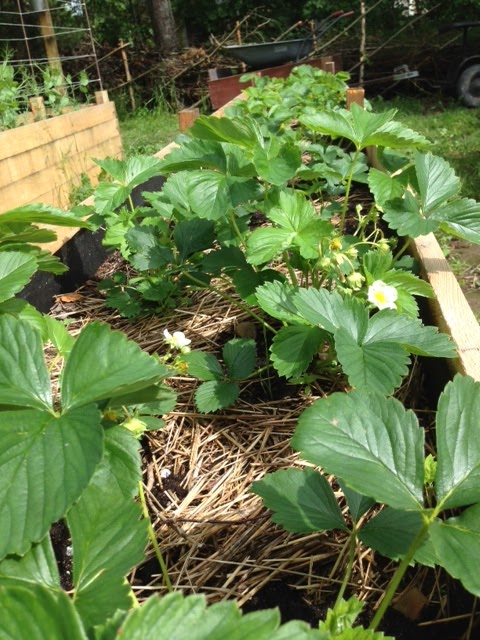 Kasvit tuntuvat viihtyvän laatikoissaan ja lämpimässä huoneessaan. Basilikatkin lähtivät siemenestä täydellä kasvun voimalla. Perunat näyttävät vahvoilta ja mansikatkin ovat kukkineet kiitettävästi. Vielä kun saataisiin lämpöä ja kun rastaat jättäisivät meillekin osan. Herneistä oli joku käynyt jo osan syömässä joten hernepenkki on vähän harvennetun näköinen :) Avomaankurkku viihtyy kasvihuoneessa, mutta komposteissa harson alla värjöttelevät kesäkurpitsat kaipaavat lämpöä vaikka nauttivatkin tontin aurinkoisimmasta paikasta. Jaksaisivat vielä tovin odottaa niin eiköhän sitä lämpöäkin aleta saamaan. Tomaatteja on jo jonkin verran tuloillaan ja paprikat aloittavat kohta kukintansa...Kasveilla on meille suuri merkitys, suurempi kuin vain ravintoarvot.