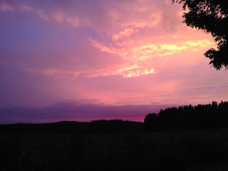 Viikonlopun taivas oli todella kaunis ennen myrskyistä yötä. Piha oli taianomainen punaliilojen sävyjen värittämänä. Koko yö kuunneltiin sateen ropinaa peltikattoon.