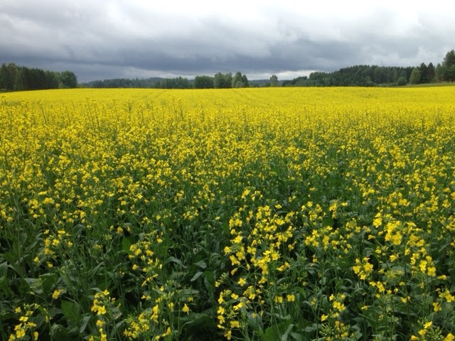 Taivas on näyttänyt joka päivä erilaiselta. Mökiltä on hienot maisemat moneen suuntaan. Peltojen keskellä kun ollaan. Tänä vuonna vielä kauniiden rypsipeltojen!