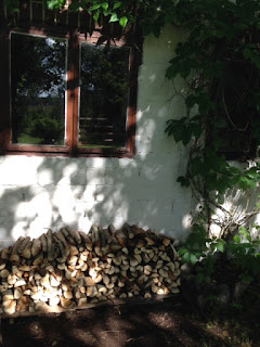 Mökillä vietettiin tulevan koululaisen syntymäpäivät. Samalla oltaisiin voitu juhlia meitä 5v-mökkiläisiä :) Saatiin lahjaksi hieno"halkokori".