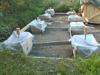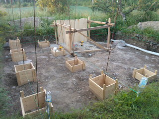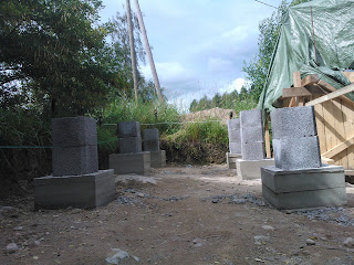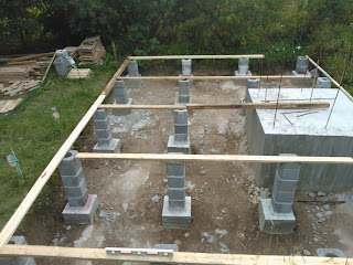 Melkeinpä tuo on rahallisesti sama jos oltaisiin tehty pöntöt korkeammaksi ja valettu täyteen jolloin harkkoja ei olisi tarvittu. Ehkä tuo on kuitenkin kivemman näköinen kun talon alta näkyy harkot.