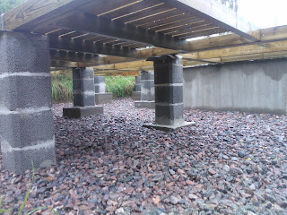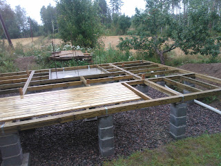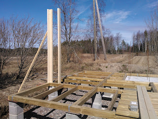 Todistetusti onnistuu =) Pikkaisen epäilytti mittaukset kun valoin 23:00 - 02:00 yöllä. Alasidepuut kiinnitettiin pilareihin reikänauhalla joka lyötiin betoniin porattuun reikään. Muutamalla huopakaistalla tasattiin korkeuserot. Tähän asti päästiin tänään... Alasidepuut alkavat olla jo paikallaan. Oli pakko kokeilla miltä terassi näyttää. Tuulensuojalevyjen raamit/kannattimet. Tuenta pesu- ja pukuhuneen välisen alapohjan kohdalla. Salaojan tarkastusputki sai tyylikkään väliaikaisen kannen. Mikäli joku tietää mikä tuo on voisi hieman valaista meitäkin. Valurautaa ja keskiosan saa irti??? Vaikka alasidepuut ovatkin kestopuuta, laitettiin talveksi pressut päälle. 2013 Taas mennään =) Kevät on koittanut ja pressut poistettu, aurinko lämmittää ja runkotolpat alkavat nousta. |