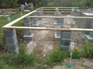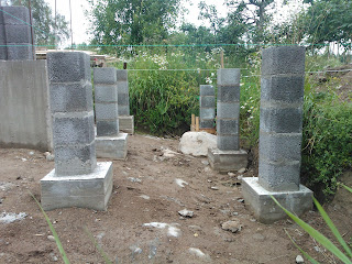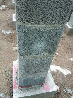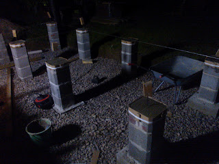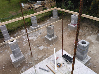 Betonipilareita ei valettu mihinkään tiettyyn korkoon. Tasaus tehdään itse harkoilla.