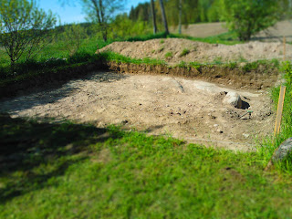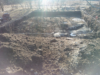 | Kaivaukset jatkuivat sunnuntaina ja alkoivat varsin hyvin kunnes 30min. jälkeen oma selkä petti täysin. Onneksi matkassa oli kaksi apuria jotka kalakeiton ja ruisleivän voimin jaksoivat jatkaa kaivamista. Omaksi tehtäväkseni jäi vesien pumppaaminen kuopasta sekä kahvien ja ruokien laittaminen. Kyllähän se hieman syö miestä kun itse tippuu kelkasta ensimmäisenä mutta minkäs teet kun selkä menee... Nyt on siis kaivettu koko ala auki ja tutkittu missä kallio menee. Kun perustamisasiat hieman tarkentuvat selviää se että tarvitseeko kaikkea irtomaata nostaa montusta. Kiitokset apureille: Timo & Jean Pierre =) |