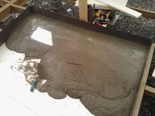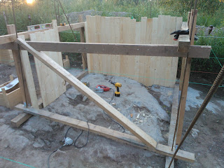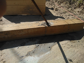 Lopuksi harkot valetaan täyteen ja tökätään harjateräs haluttuun paikkaan.