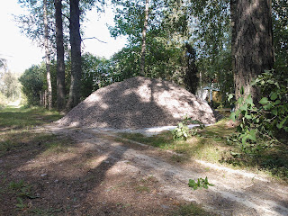 Noin 50 kottikärryllistä jäljellä ja sitten voidaan laittaa suodatinkangasjonka päälle tulee muuta maa-ainesta.